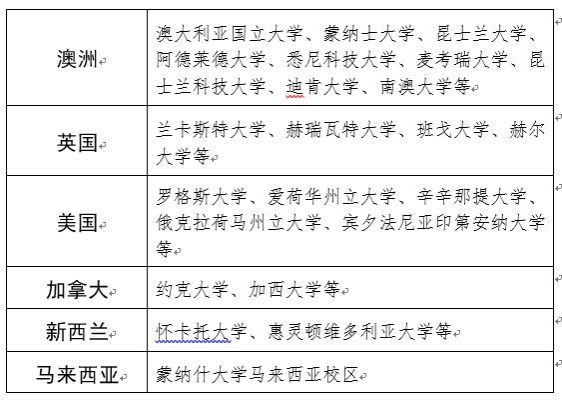 国际本科项目的海外合作院校主要包括美国、加拿大、英国、澳大利亚、新西兰等国60余所知名院校,多所合作大学跻身QS世界排名前100位行列,多所合作大学商学院获得AACSB、EQUIS、AMBA“三皇冠”认证。