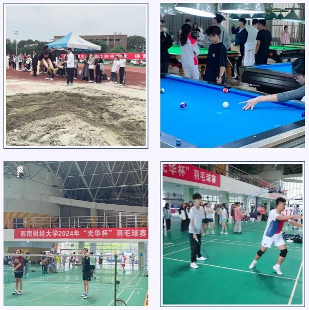 学子昂首阔步,铿锵有力地喊出“融汇中西、开启未来,赛场逐梦,青春飞扬”的口号。他们热情高涨、斗志昂扬,在彩虹跑、飞盘、跑步、乒乓球、跳高、跳远、羽毛球、台球等比赛项目中挥洒汗水,台球比赛进入八强,2024级张瀚宇同学勇夺男子组跳高比赛第一名。