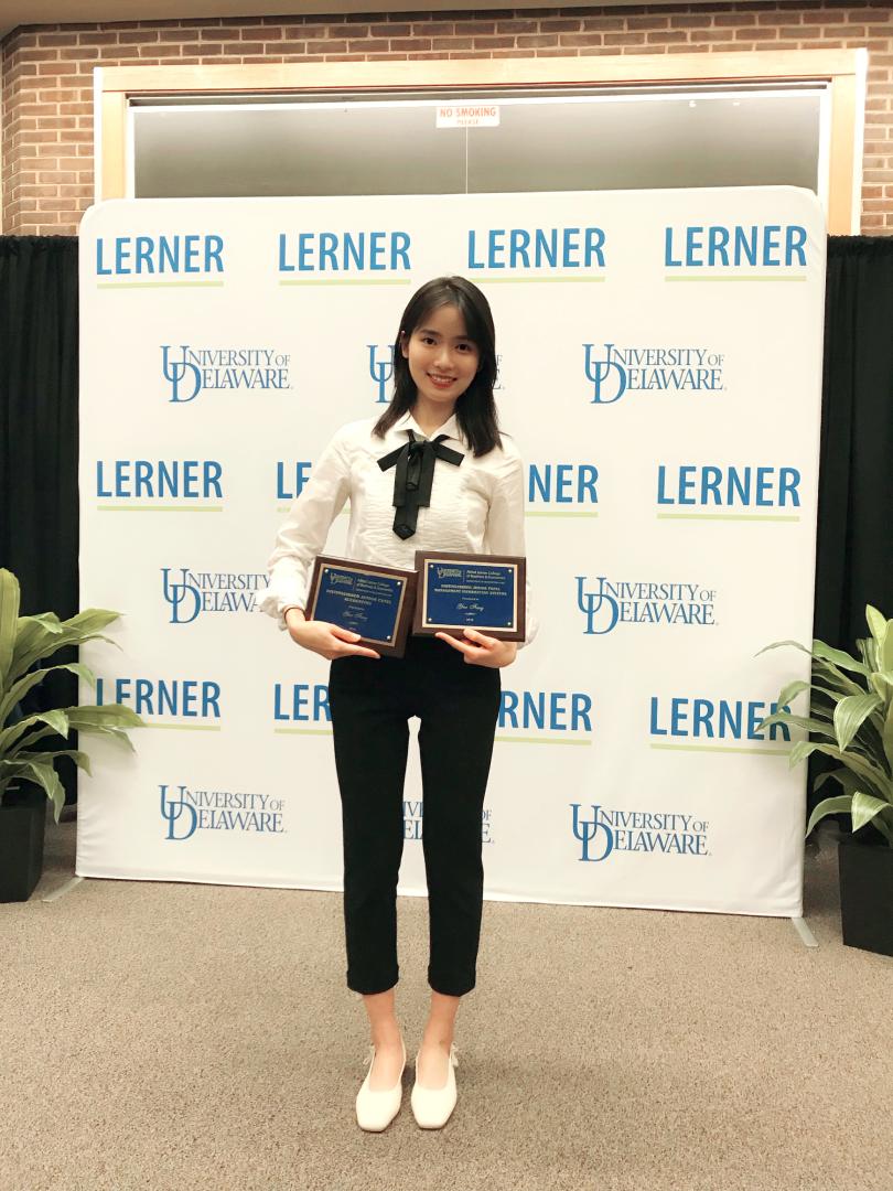 连续六学期获院长嘉许名单(Dean’s List)、特拉华大学2019届荣誉毕业生(Cum Laude)。