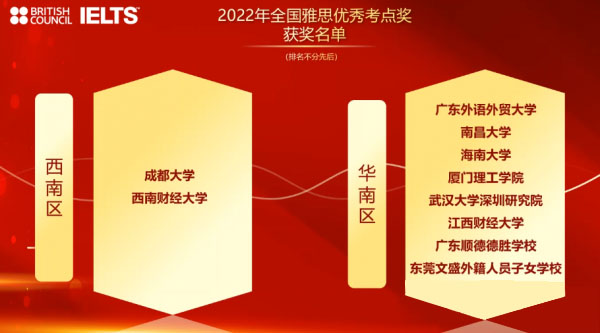 光华校区雅思机考考点作为西南地区考点之一,获得该项荣誉。