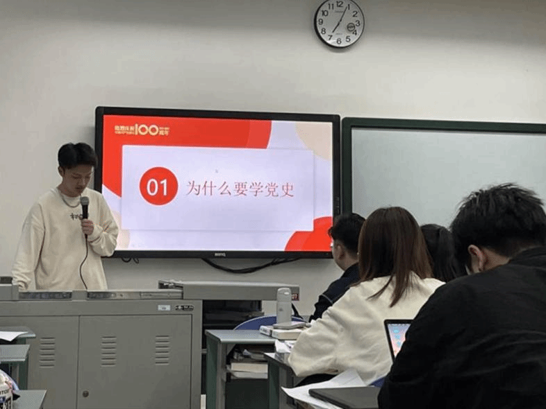 学生学习党史专题班会课——分为四个部分来开展,分别是为什么要学党史、四大革命根据地介绍、没有共产党就没有新中国、以及习近平总书记寄语。从老师细致的讲解中,学生们认识到“欲知大道,必先为史。”党史、国史中蕴含着治国理政的瑰宝,是先行者们从实践经验中提炼出来的立国、兴国智慧。学习历史,是为了更好地认识今天,开创更好的明天;习近平总书记给广大青年的深切寄予更让同学们以崇仰之情、敬畏之心认真学习党的历史、新中国的历史,从中汲取新的智慧和力量,最终将其转化为努力学习的坚强动力。