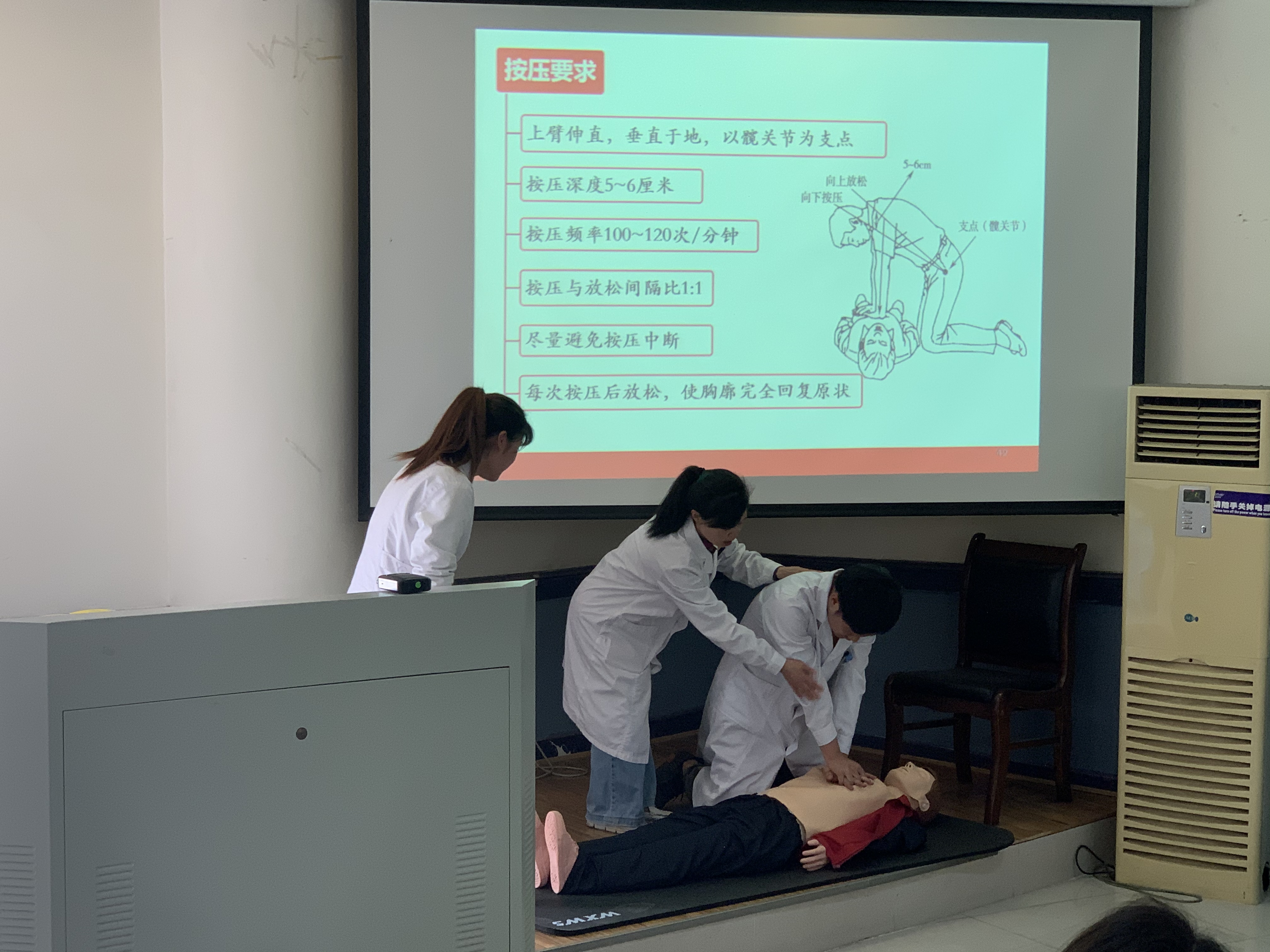 3月30日,为了深入推动党史学习教育中“我为群众办实事”实践活动,支部邀请校医院敬龙军为全体教职工讲授心肺复苏方法、AED的使用方法、气道阻塞等安全急救知识,并做了现场演示。通过本次培训和实操训练,使教职工掌握了基本的应急救护方法。