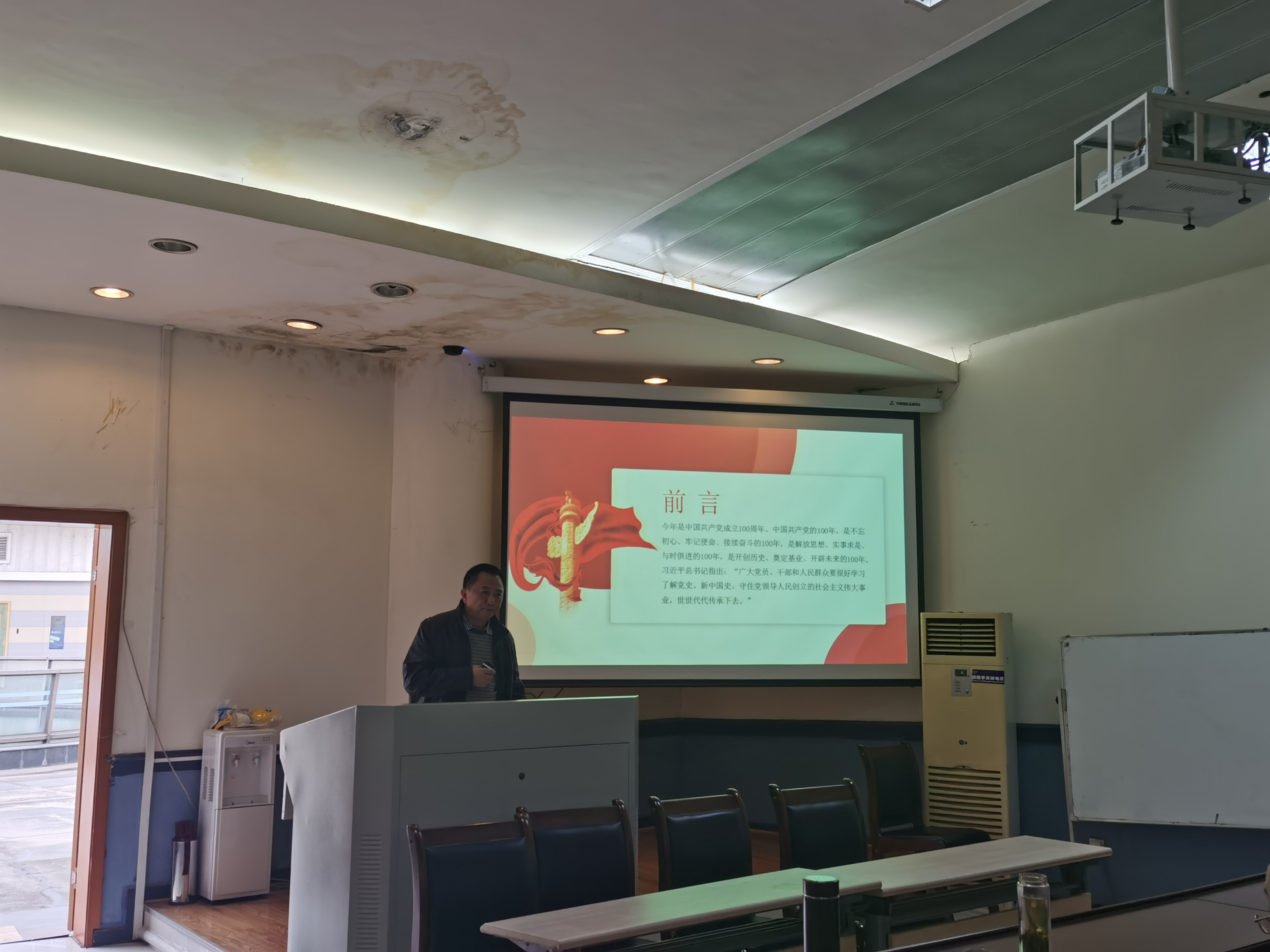 联合党支部在文献中心205教室开展党史学习教育专题党课。支部书记吉松涛以《百年大党,百年辉煌》为题,动员全体党员干部和教职员工学习党史。