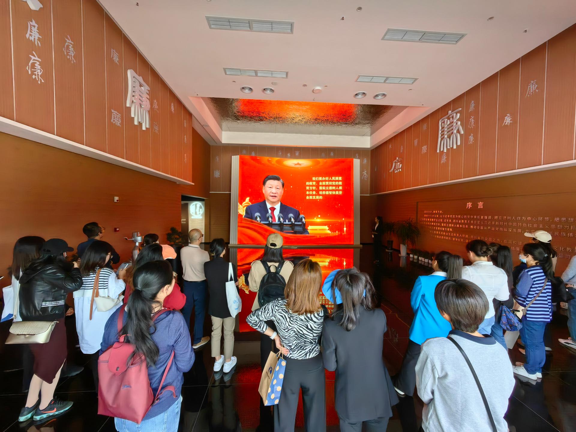 在讲解员的带领下,参观人员深入“溯廉课堂”“警悟课堂”“建瓴课堂”“明镜课堂”四个展厅,从源远流长的廉洁基因追根溯源,到封建社会文教崩坏的沉痛教训,从中国共产党的百年廉洁教育实践,再到党的十八大以来在以习近平同志为核心的党中央坚强领导下全面从严治党历史性成就,穿越时空的历史典籍、光影流转的皮影戏艺术、声泪俱下的忏悔录,共同印证了廉洁在教育系统中的重要性。