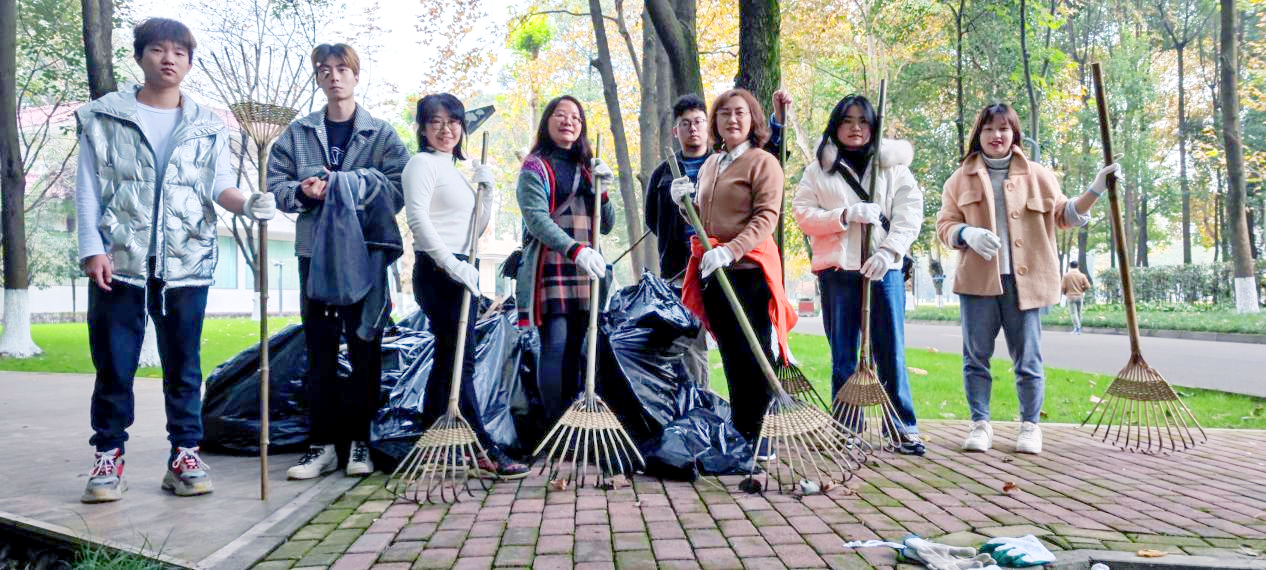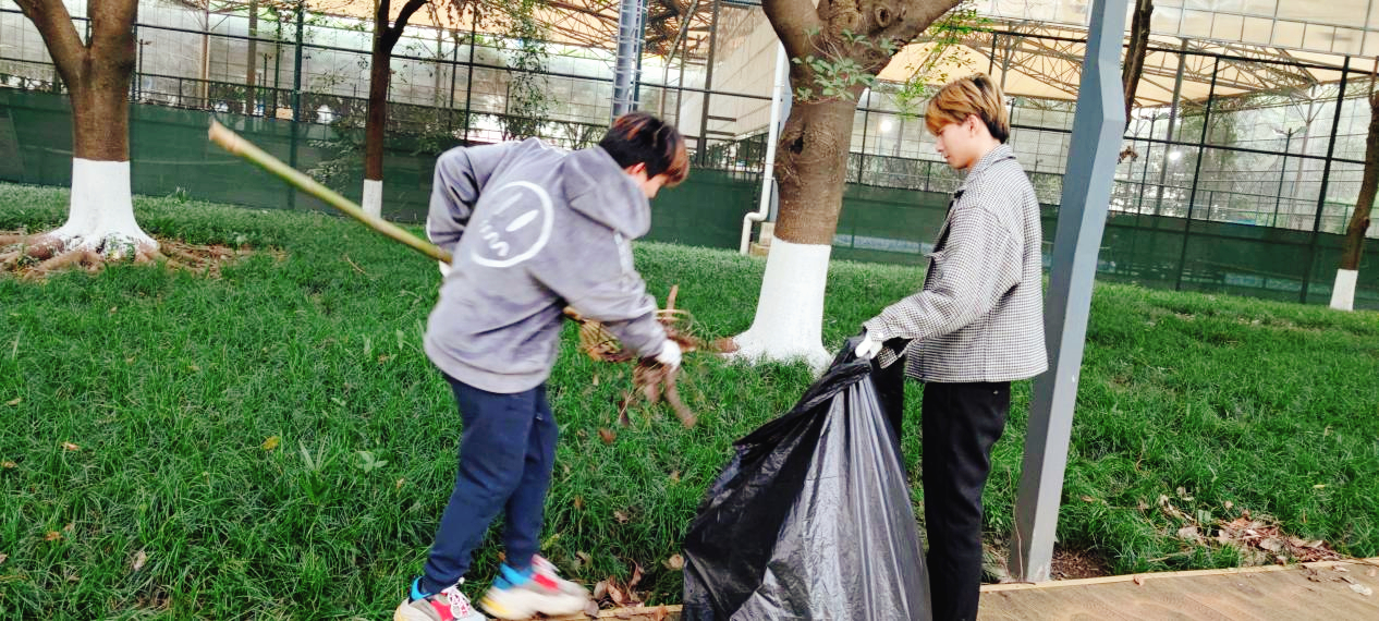 学院负责对光华校区第一篮球场西侧绿化带开展落叶清扫、垃圾清运等工作,师生一起参加劳动,大家齐心协力,干劲十足。在师生的共同努力下,草坪上的白色垃圾、枯树枝、碎砖石等杂物被捡拾的一干二净,校园环境焕然一新。