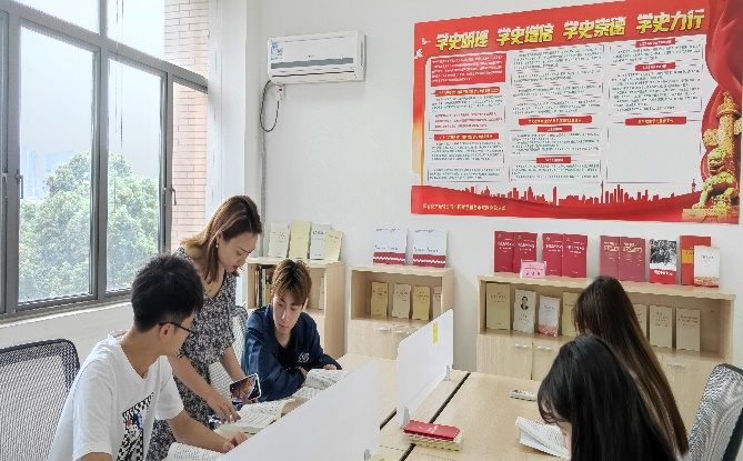 2.设置“党史学习教育”专题活动室和“读书角”。支部设光华楼211会议室为“党史学习教育”党员活动室,设明德楼613室为“党史学习教育学生读书角”,设明德楼702室为经管干部培训学员“读书角”,并购买“四史”、“四个自信”等书籍,充实活动室和读书角书籍。