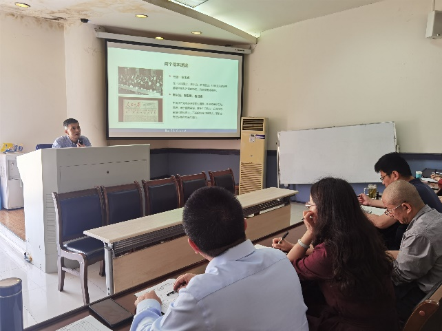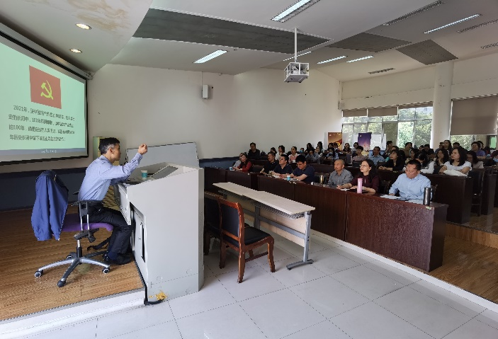 纪委副书记、纪检监察办公室主任、教授、博士,曾朝夕讲党课,党课主题为:铭记艰辛历史,不断增强“四个自信”。支部全体教职员工参加。
