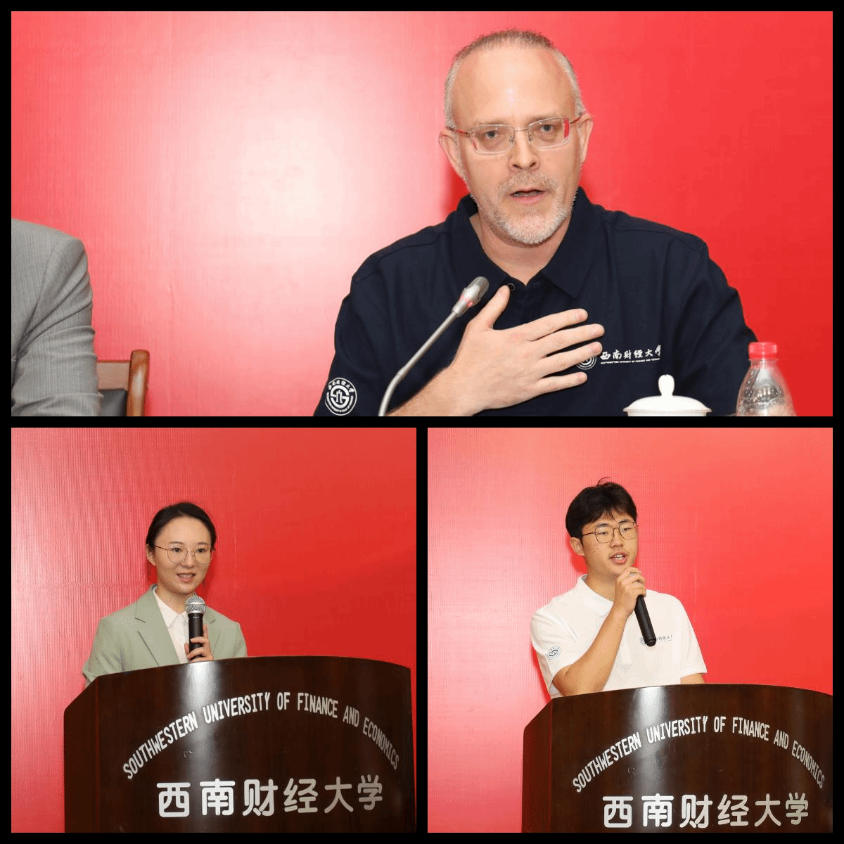 往届学生代表伍芸晗同学结合自身海外学习生活经历分享了心得体会,号召同学们传承“经世济民、孜孜以求”的西财精神,把奋斗作为青春最亮丽的底色,在追梦的道路上实现自我。新生代表刘佳琪同学分享了自己为何选择学院和在学院学习生活的感悟,表示将充分珍惜,认真把握,做好学业规划和职业规划,努力实现使自己终身受益的蜕变。