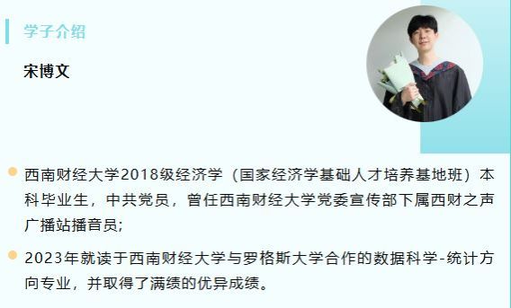 首先,宋博文学长回忆了自己在西财的学习时光,讲述了自己在光华园的日子里如何点燃理想之灯,追寻梦想之光。他用自身经历激励同学们每一个伟大的梦想都始于一次小小的尝试,每一次微小的努力都会累积成未来的辉煌,在学习和生活中需要保持积极进取的态度,设定远大的目标并为之不断奋斗。无论走到何方,都要心怀感激,心系母校和老师,感恩并回报社会。