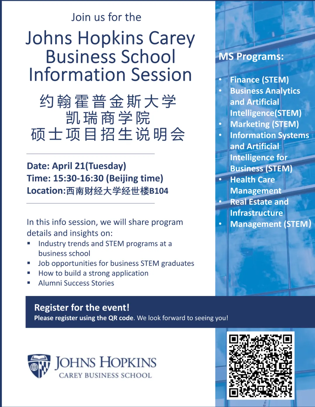 美国约翰霍普金斯大学凯瑞商学院硕士项目招生说明会