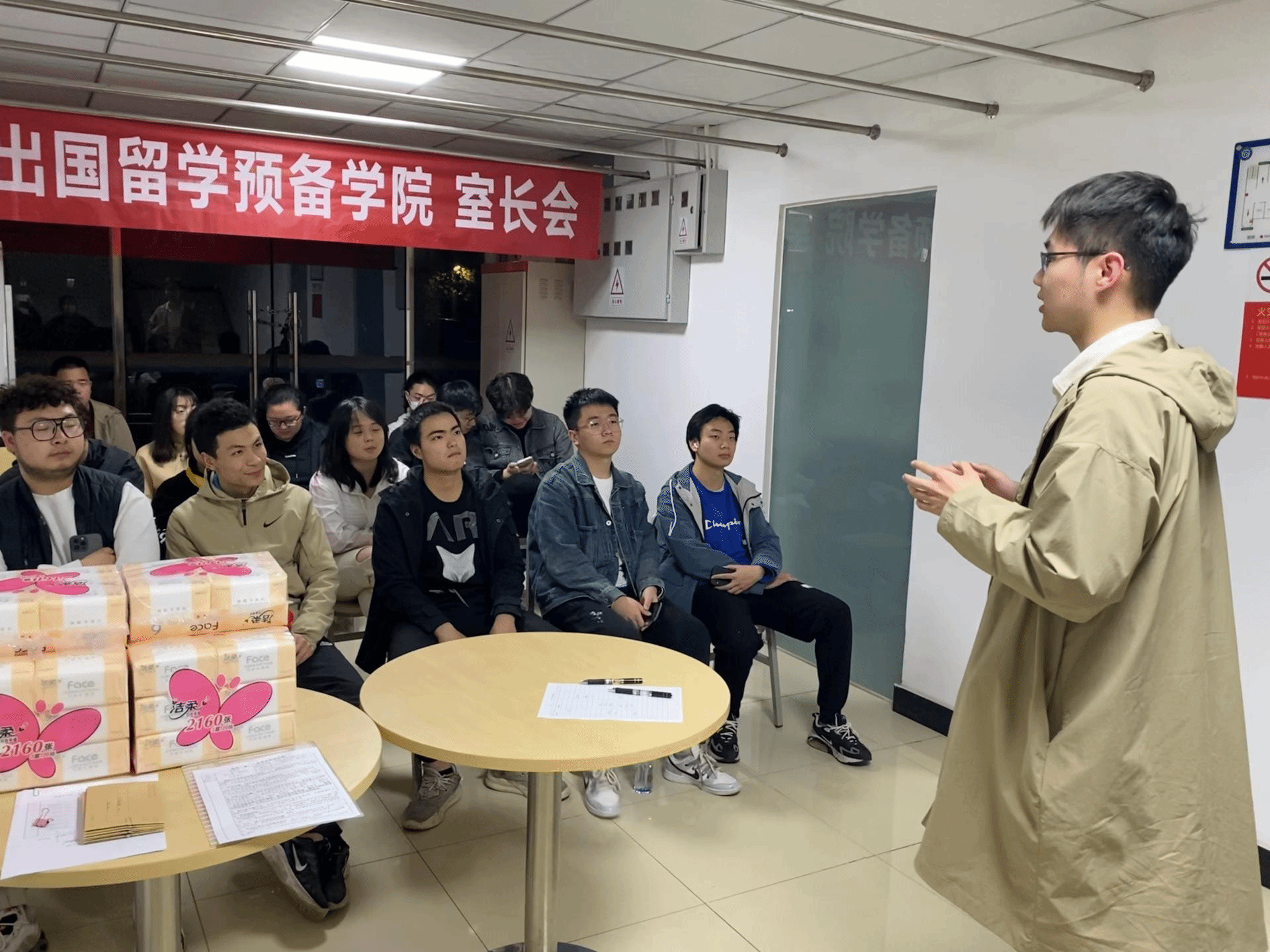 学生会副主席李耀坤同学作为优秀室长代表,他对入学近两年时间在宿舍生活和学习进行发言,如何安排好自己的作息时间、如何分工做好寝室内务,怎样有效把时间利用起来进行高效的学习等问题作分享。李同学对在座的各位同学给予鼓励和祝福,希望每位同学都能进入到自己理想的国外大学。